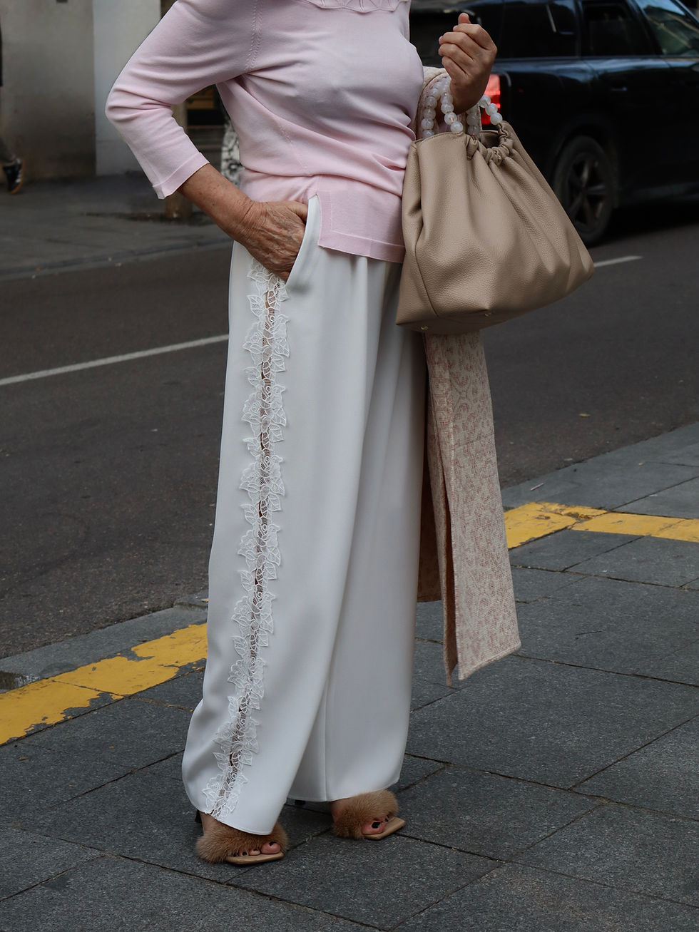 Pantalón encaje lateral blanco